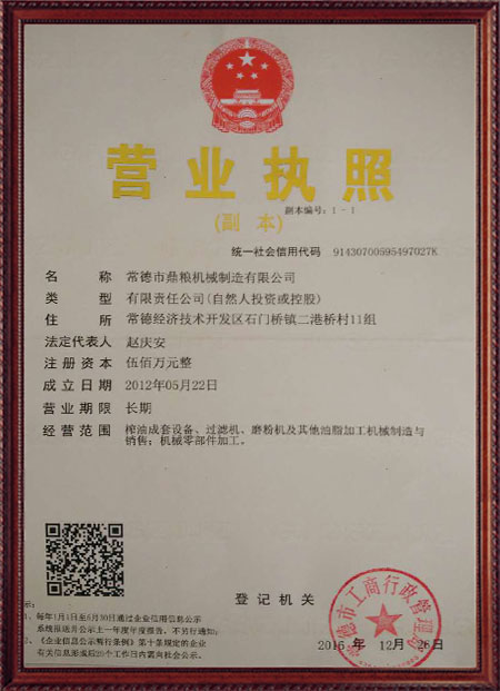 企業(yè)堅持“質(zhì)量、口碑就是我們的生命”的原則,嚴(yán)格執(zhí)行質(zhì)量標(biāo)準(zhǔn)檢驗體系。生產(chǎn)的"鼎糧"牌系列產(chǎn)品,產(chǎn)品質(zhì)量優(yōu),性價比高,深受廣大新老客戶的青睞,通過了各級部門的鑒定認(rèn)可,立式、臥式液壓榨油機(jī)均榮獲農(nóng)機(jī)推廣證。